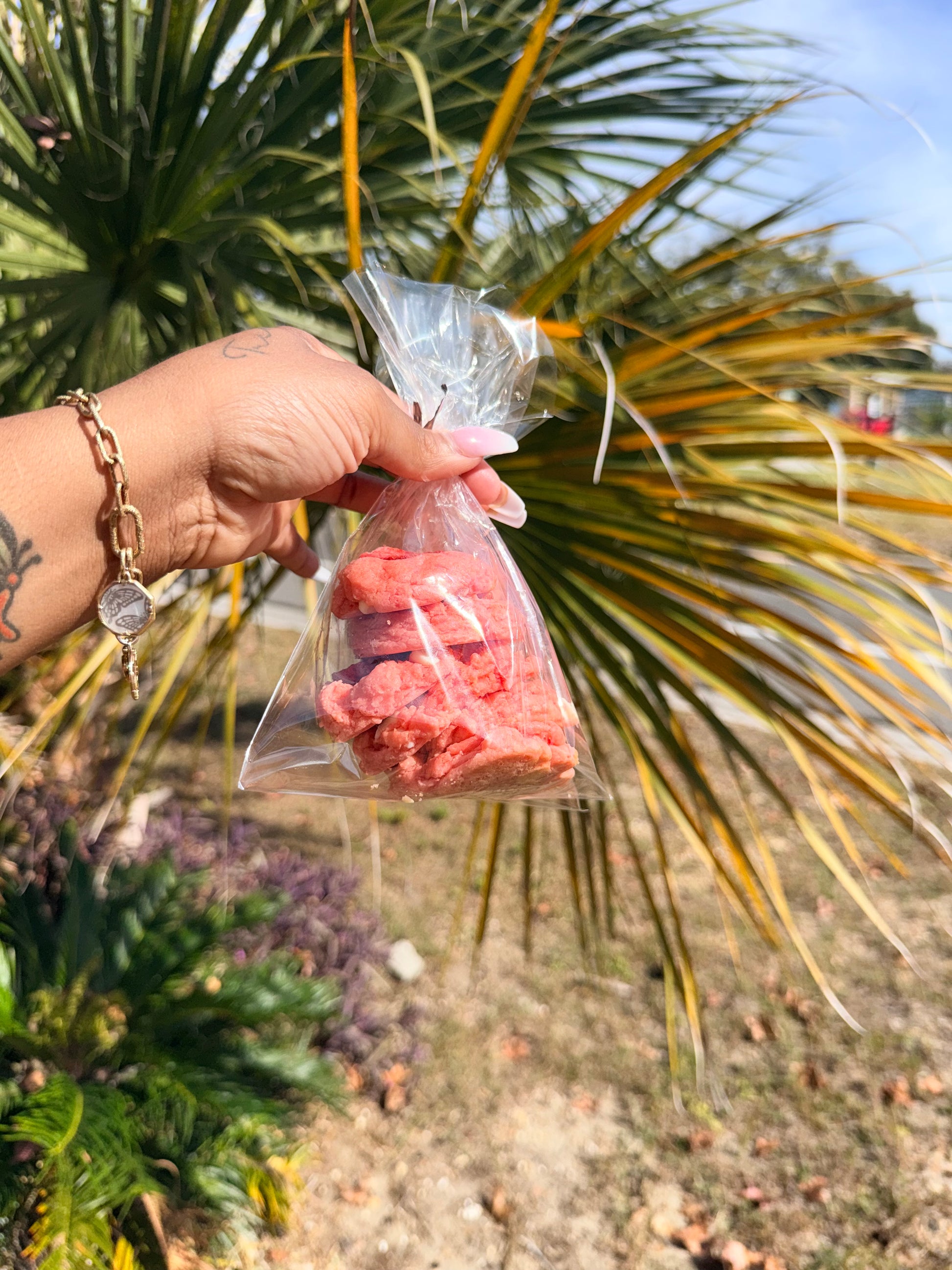 Our Mini Chocolate Chip Cookies with Dried Strawberries are baked fresh with rich vanilla chips and topped with sweet dried strawberries for the perfect balance of chocolate and fruit in every bite.